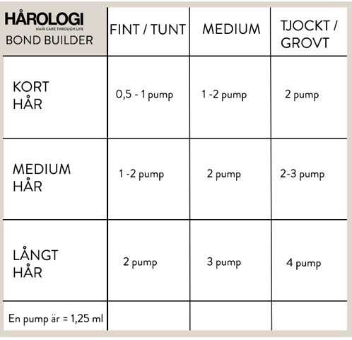 VAIHE 1 - Aloita selvittämällä, kuinka monta pumppausta sopii hiustesi pituuteen ja laatuun taulukon avulla.